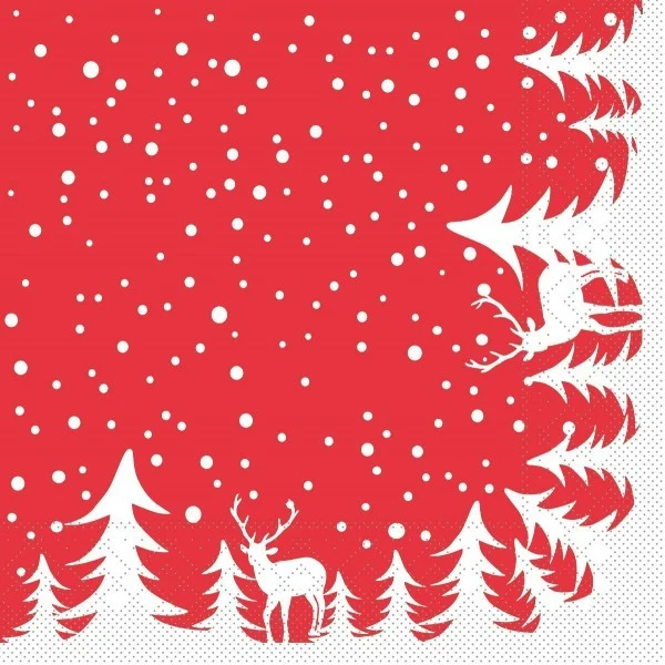 Servetele de masa, 3 straturi, Tissue - Marvin (model de iarna, fundal bordo) / 40 x 40 cm / 100 buc