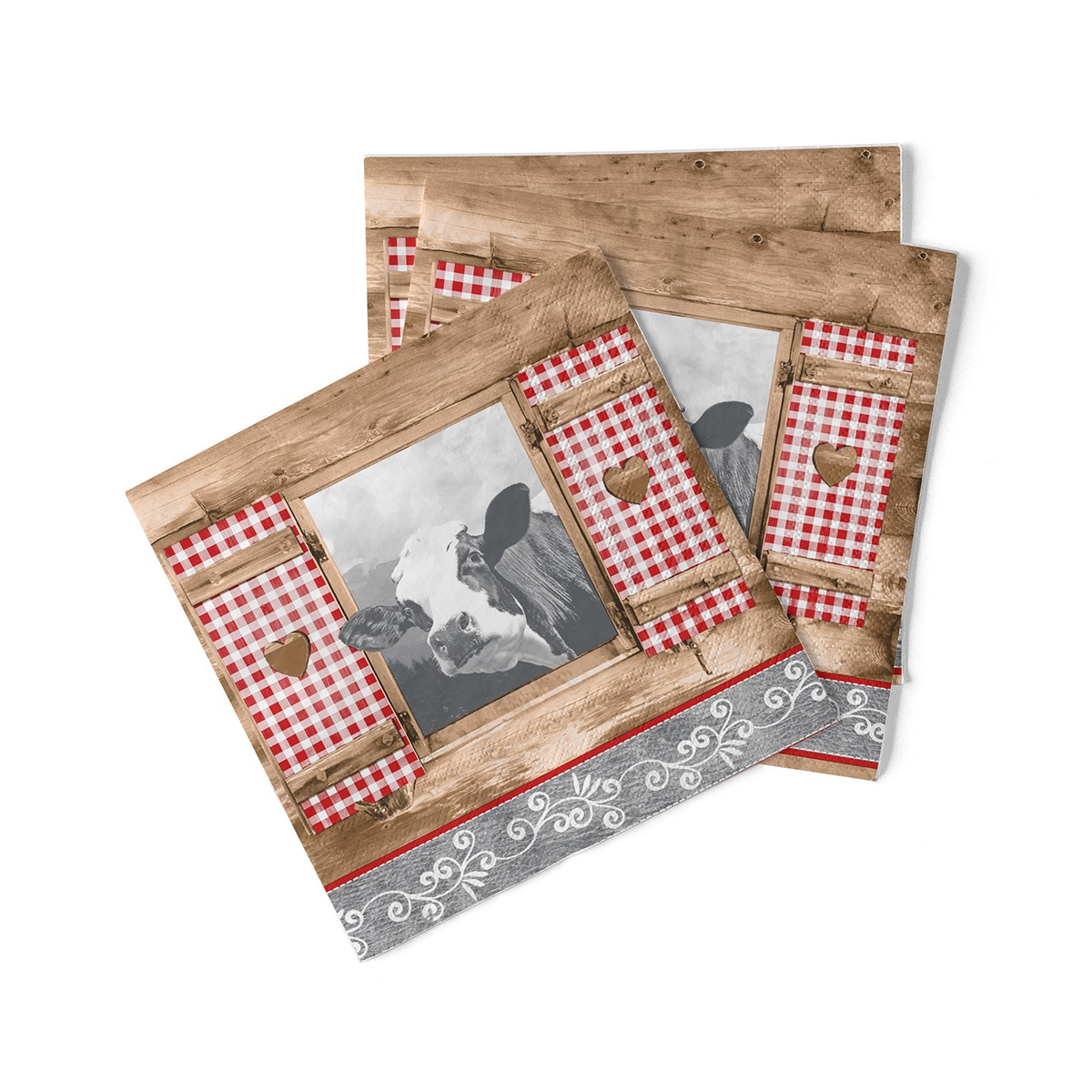 12 x Servetele de masa, 3 straturi, Tissue - Almblick (imprimeu vacuta) / 40 x 40 cm / 100 buc
