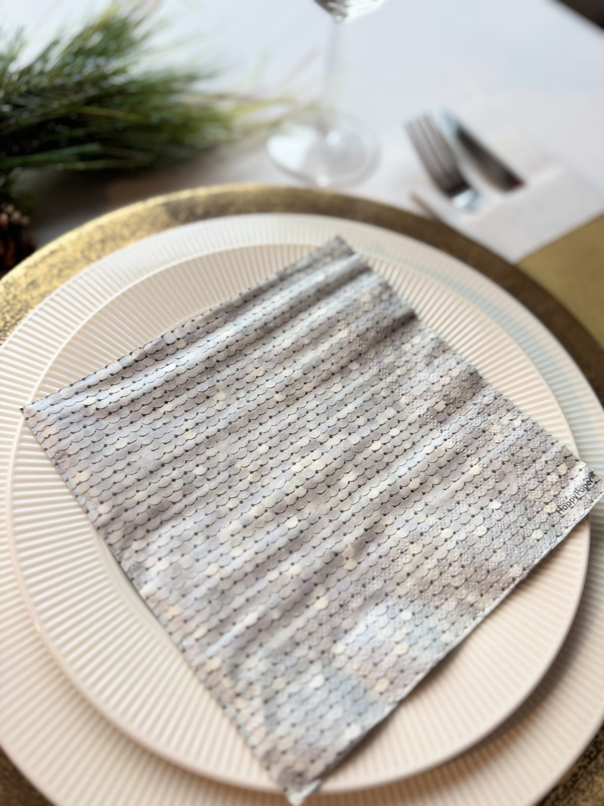 Servetele de masa, 3 straturi, Tissue - Sequin silver, 33 x 33 cm, 20 buc