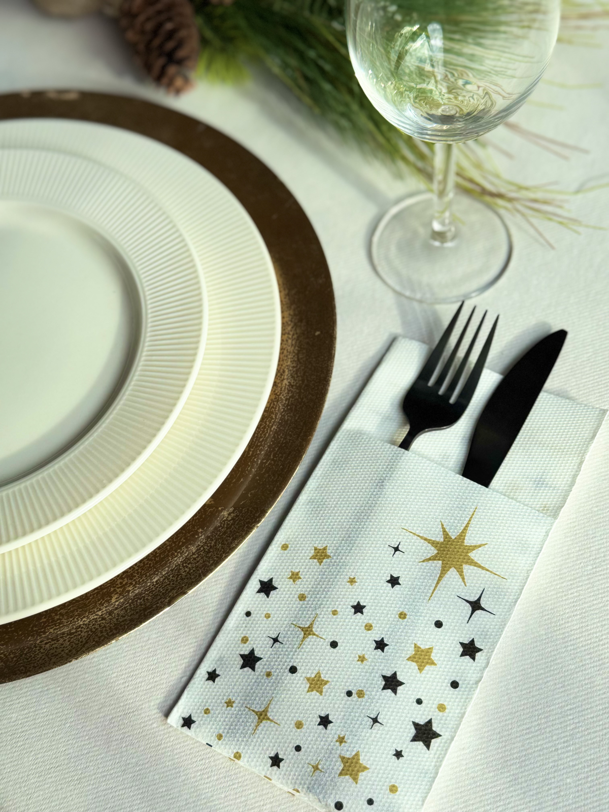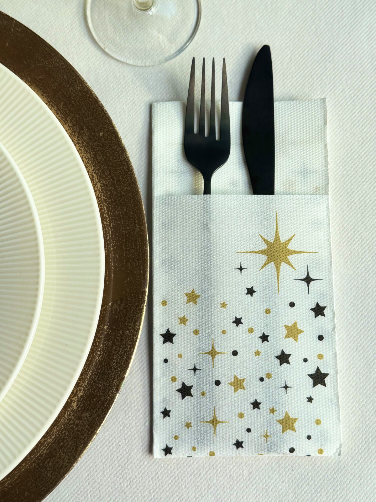 Servetele cu BUZUNAR pentru tacamuri - Christmas Star (white) / 40 x 40 cm / 20 buc