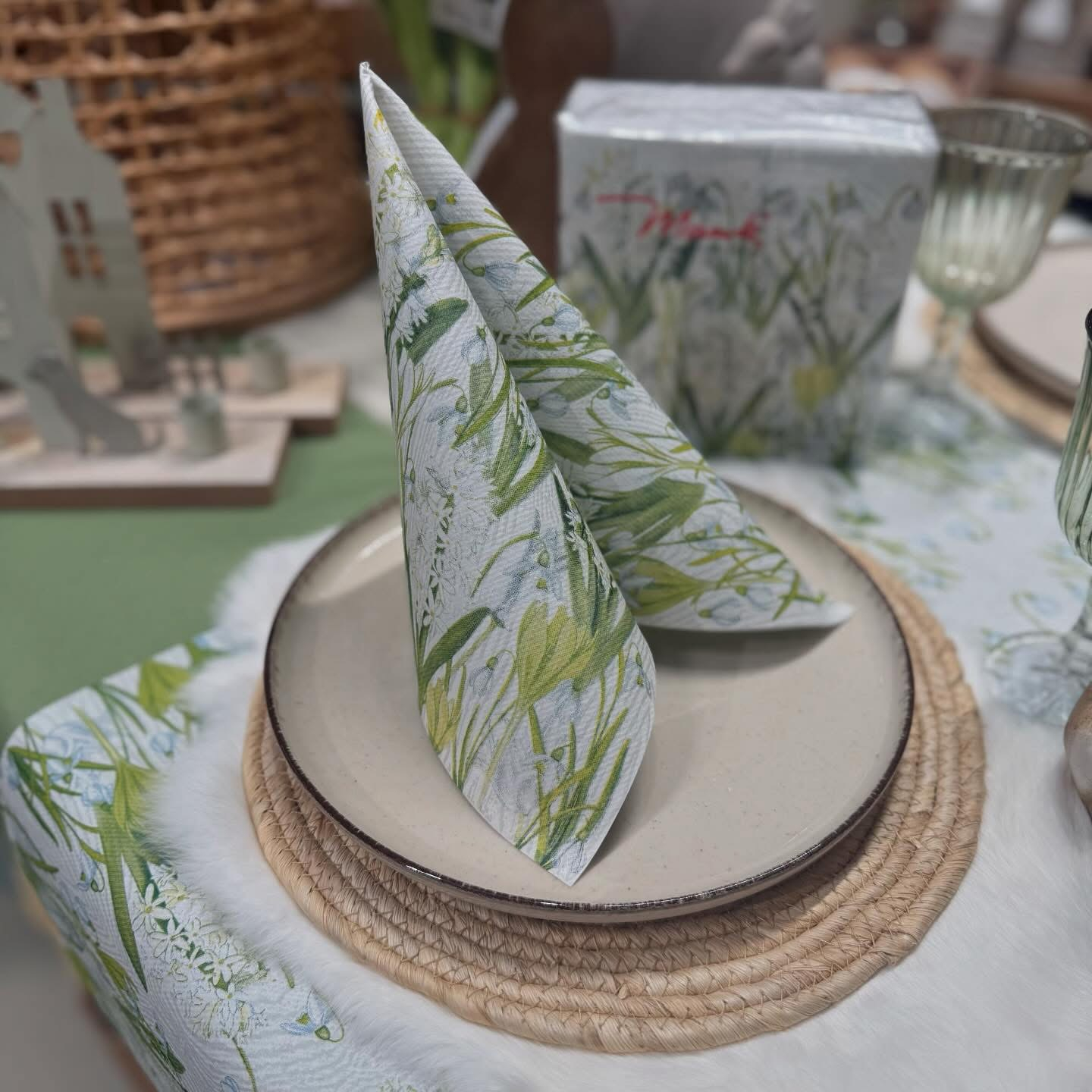 Cu șervețelele festive Amelie vei aduce primăvara pe mesele tale în orice sezon! Imprimeul delicat cu ghiocei și zambile, în tonuri delicate, aduce culoare și prospețime pe orice masă.